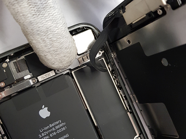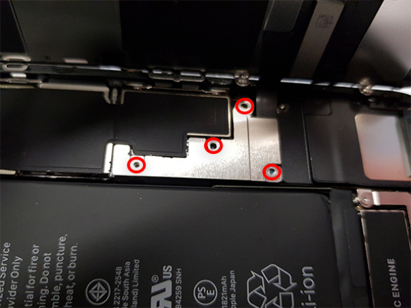 - Fjern fire Phillips-skruer, som fastgør LCD-kabelbeslaget: - Brug forsigtigt en spudger eller en pincet til at afmontere LED-panelets stik, og løft digitizerkabelkontakten op fra stikket. -Gør det samme med sensorbeslaget og sensorkablet. - Løft kablet, indtil det skilles ad. Fjern LCD-skærmen. Tip: - Under denne reparation skal du være opmærksom på hver skrues originale position. For at undgå skader på din iPhone skal du sørge for, at alle skruerne går tilbage præcis hvor de kom fra.