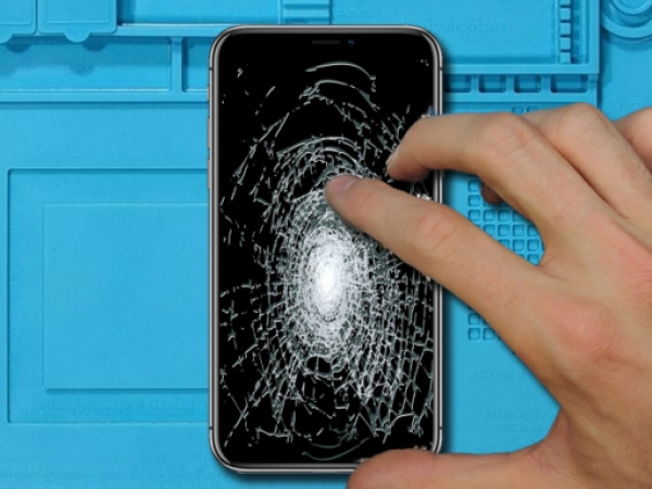 Hvis skærmen er revnet, skal du undgå yderligere ødelæggelse ved at holde mobilskærmen sammen med tape.