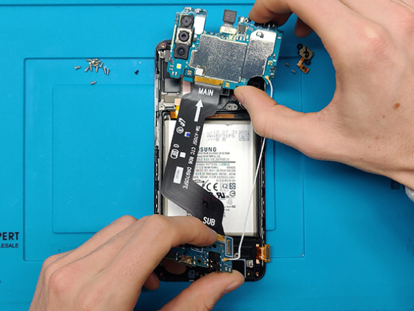 Vær opmærksom på antennen og flex-kablerne der forbinder MAIN og SUB boardet.