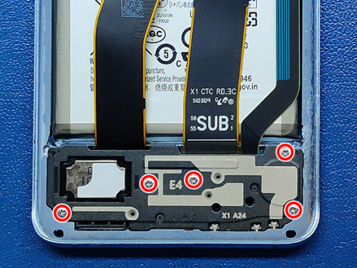 Fjern de tre 4,0mm Phillips-skruer der fastholder kortet til USB-C opladerstikket.