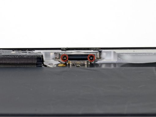 To 2,9 mm Phillips-skruer fastgør Lightning-kontakten til bagcoveret. Disse skal fjernes.