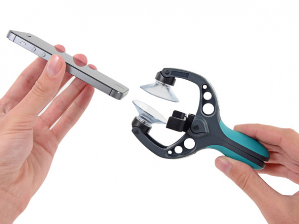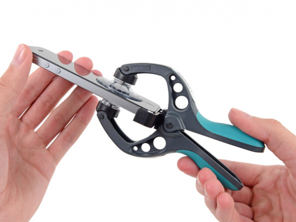 • Hold iPhonen med et sikkert greb og skil sugekopperne igen (ved at lukke håndtaget). Træk frontpanelet væk fra bagcoveret.