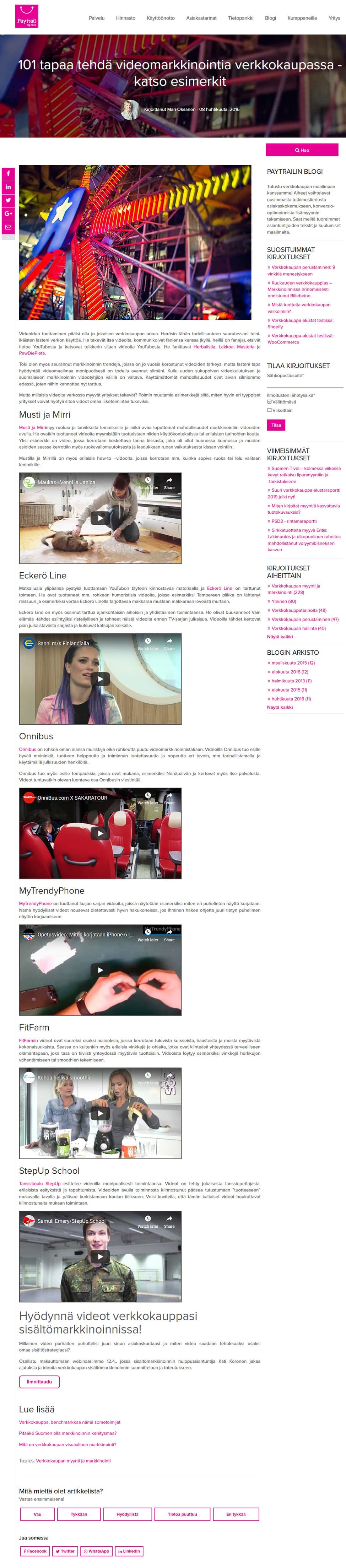 08.04.2016 - 101 tapaa tehdä videomarkkinointia verkkokaupassa - katso esimerkit