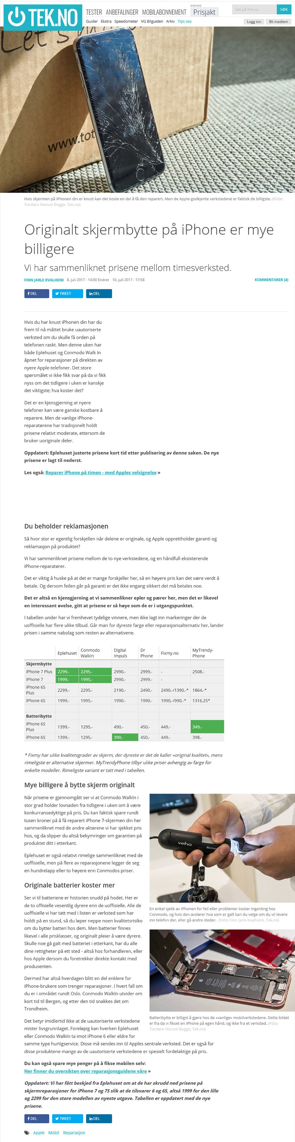 08.07.2017 - Originalt skjermbytte på iPhone er mye billigere