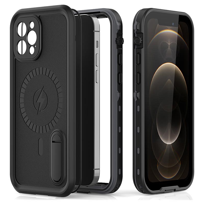 Extreme IP68 iPhone 12 Pro Magnetisk Vandtæt Taske - Sort