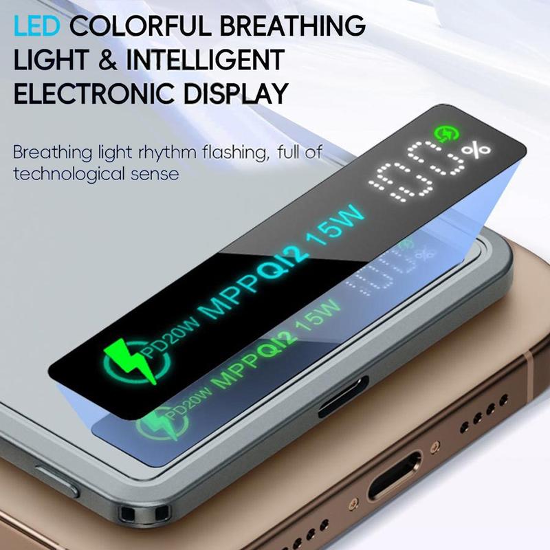 Det indbyggede magnetiske design hjælper med at holde kompatible enheder sikkert på plads under opladning. Med en enkel snap-on-fastgørelse forbliver powerbanken mere pålideligt på plads til trådløs opladning, hvilket gør den særligt praktisk til kompatible iPhone-modeller og andet magnetisk opladningstilbehør. Dette giver ekstra bekvemmelighed for brugere, der ønsker en mere problemfri opladningsoplevelse uden konstant at skulle justere kabelpositionen.