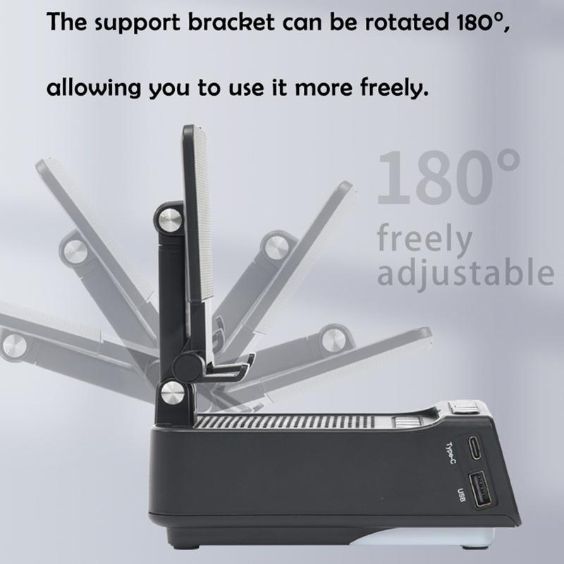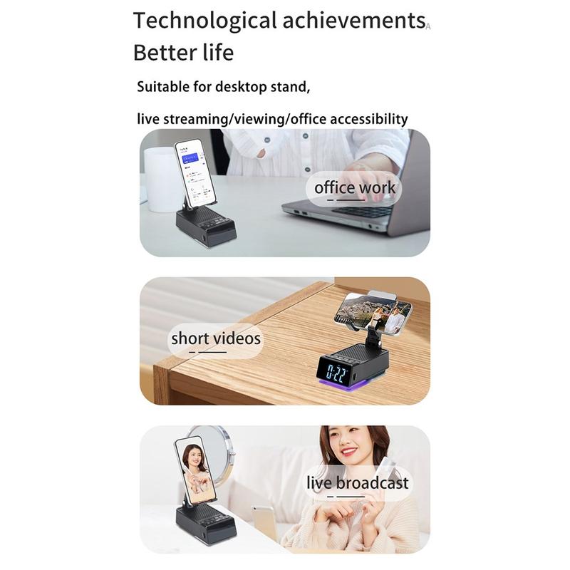 F30 3-i-1 foldbar smartphone-stativ, Bluetooth-højttaler og digitalt vækkeur - Bluetooth 5.1, 5 W 360° lyd, 2000 mAh powerbank, omgivende RGB-lys
