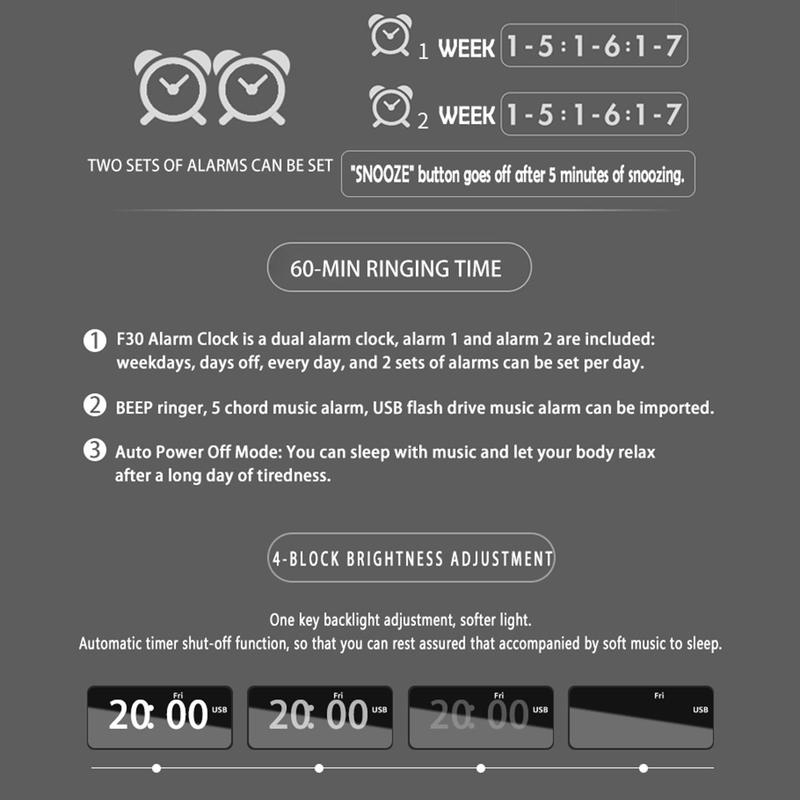 - Smarte urfunktioner - Tidsvisning med høj kontrast (justerbar lysstyrke), to alarmer med snooze og automatisk tidssynkronisering, når den er parret med din telefon.