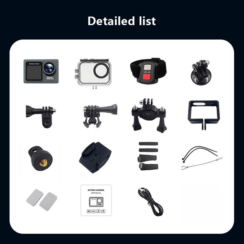 F300AAR-G 5K actionkamera med vandtæt taske, fjernbetjening og tilbehør