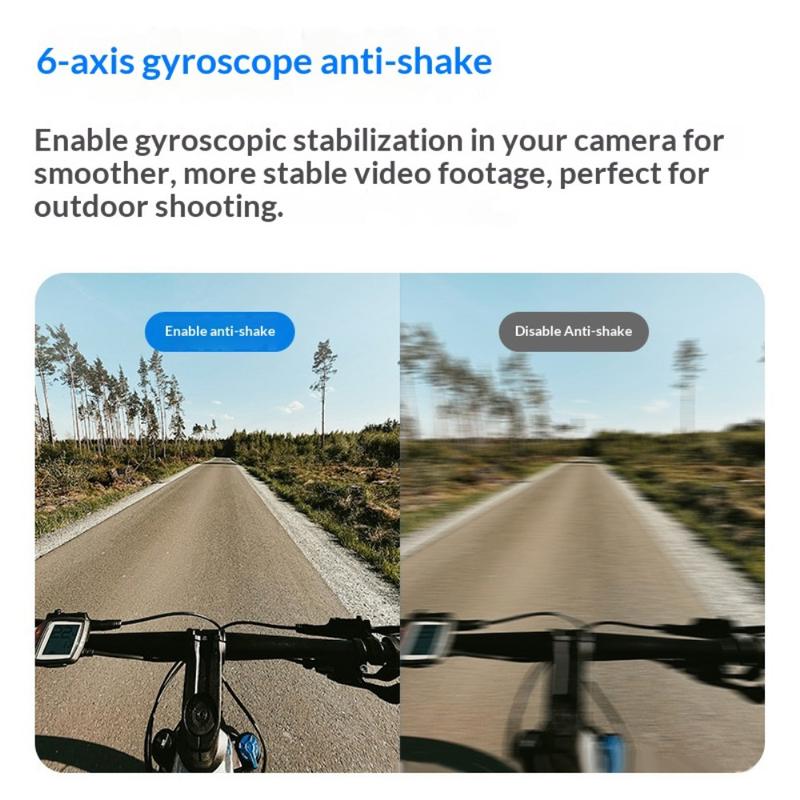 Avanceret 6-akset gyroskopisk stabilisering holder videoer glatte og stabile - selv under højhastighedssport, cykling eller i ujævnt terræn - så dine optagelser ser professionelle ud uden ekstra udstyr.