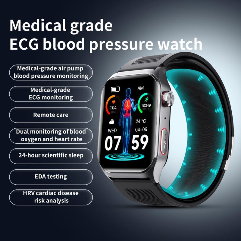 F520 Advanced Smartwatch med luftpumpe, blodtryk, EKG, puls og søvnovervågning - 2,1" IPS-skærm, SOS-faldalarm