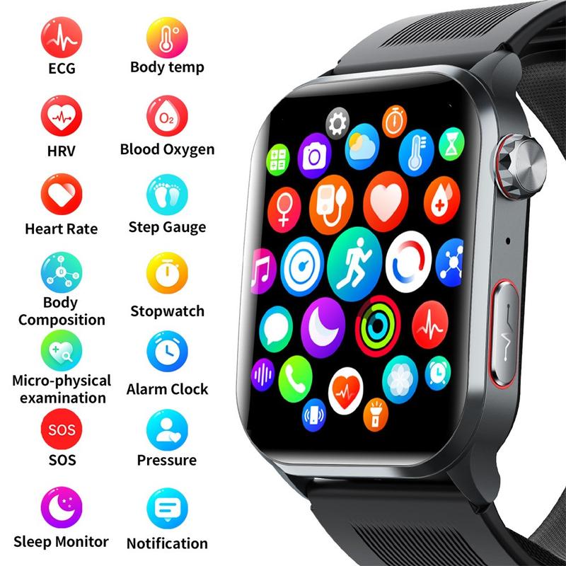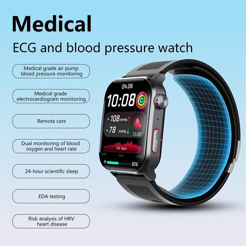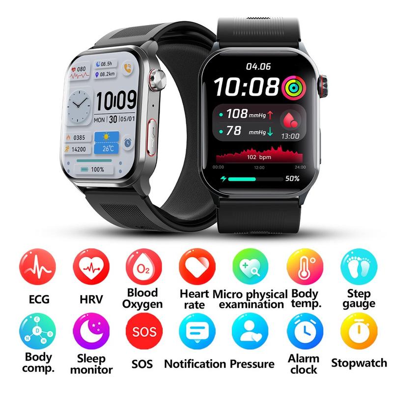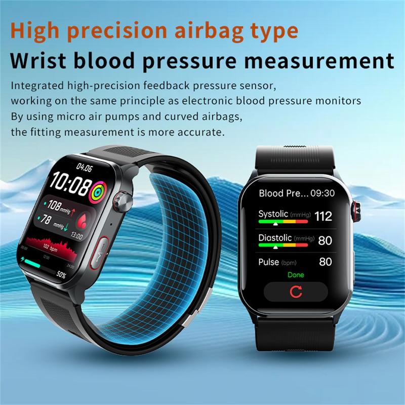 F530 Smart Watch med luftpumpe, blodtryk, EKG, puls og søvnregistrering - SOS-faldalarm, 2,1" IPS-skærm