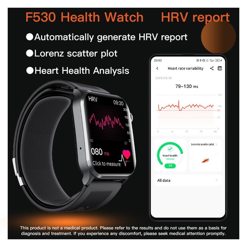F530 Air Pump Blood Pressure Smart Watch er designet til brugere, der ønsker dybere indsigt i deres fysiske og mentale velbefindende. Med integreret EKG-overvågning, 24-timers dynamisk pulsmåling og oscillometrisk blodtryksmåling drevet af en lydløs Murata piezoelektrisk mikroblæser leverer det detaljerede sundhedsdata direkte på dit håndled. Kombineret med videnskabelig søvnanalyse, stress- og følelseshåndtering og sundhedssporing med flere parametre fungerer F530 som et kompakt dagligt sundhedstjek.