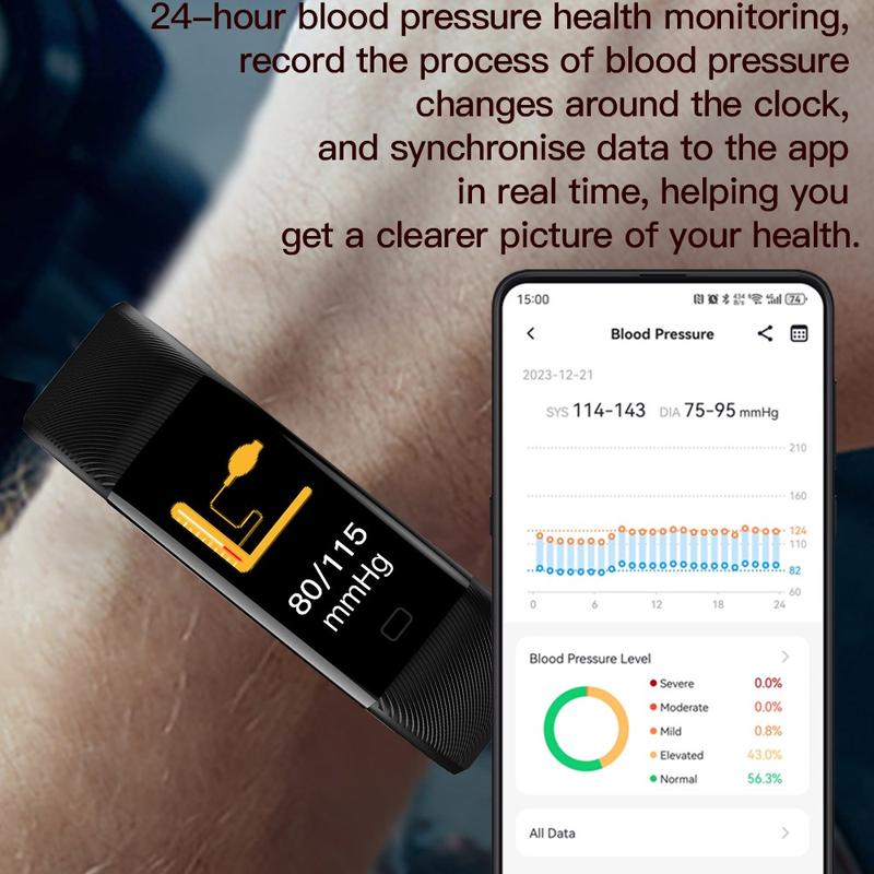 F71 Smart Bracelet tilbyder en alt-i-en-oplevelse af sundhedssporing med overvågning af puls, ilt i blodet (SpO₂), blodtryk og kropstemperatur. Perfekt til at holde øje med dit velbefindende i løbet af dagen.