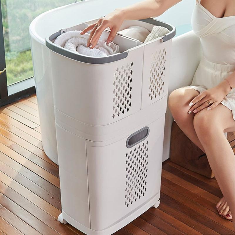 F867 PP vasketøjskurv kombinerer bekvemmelighed, stil og funktionalitet. Med sortering i to lag, smidig mobilitet og et fritstående design er det en smart opgradering til at holde styr på vasketøjet i ethvert hjem.