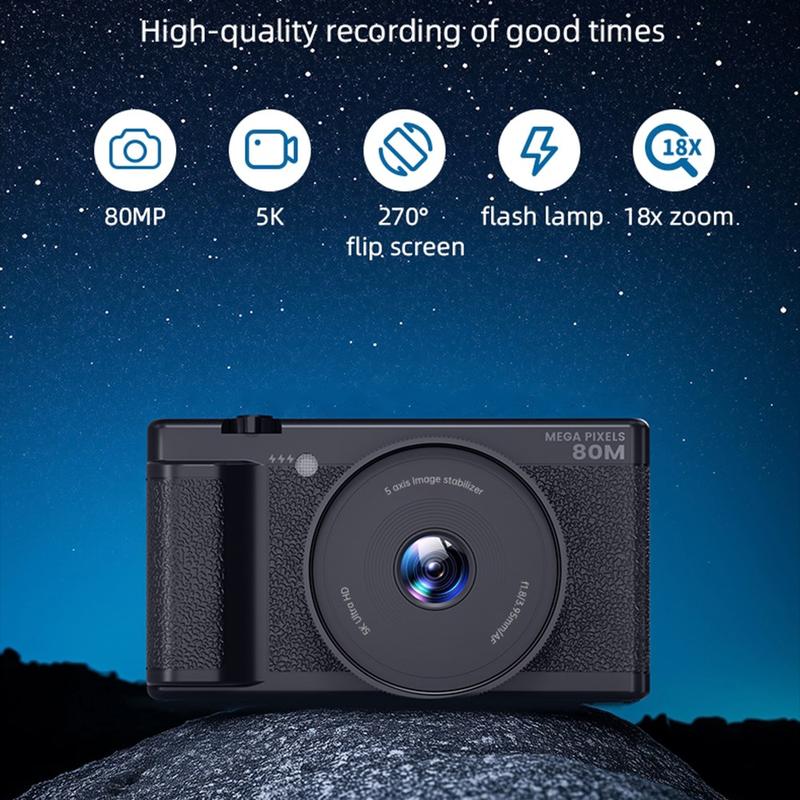 FC003W Digitalkamera med 2,8" IPS-flipskærm - 5K-videooptagelse, 80MP-fotos og WiFi-forbindelse