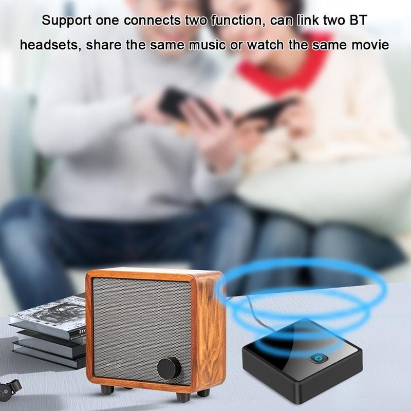 Funktionen one-connects-two gør det muligt at parre adapteren med to Bluetooth-hovedtelefoner samtidig, hvilket gør den perfekt til at dele musik, film eller tv-lyd uden at forstyrre andre.