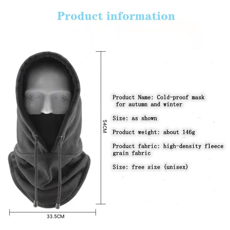 - Multifunktionelt design: Kan bruges som balaclava, hætte eller halstørklæde, så den nemt kan tilpasses forskellige dækningsbehov.