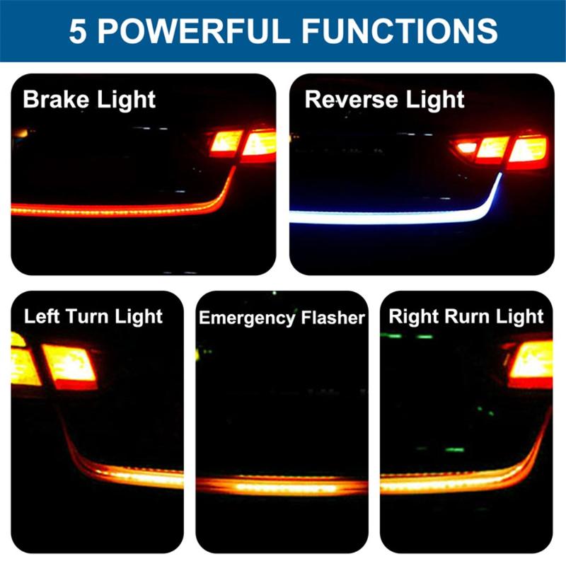 Fleksibel LED-bagklaplysstrimmel 120cm - Vandtæt bageste bremse/baglæns/blinklys til biler og SUV'er, 12V
