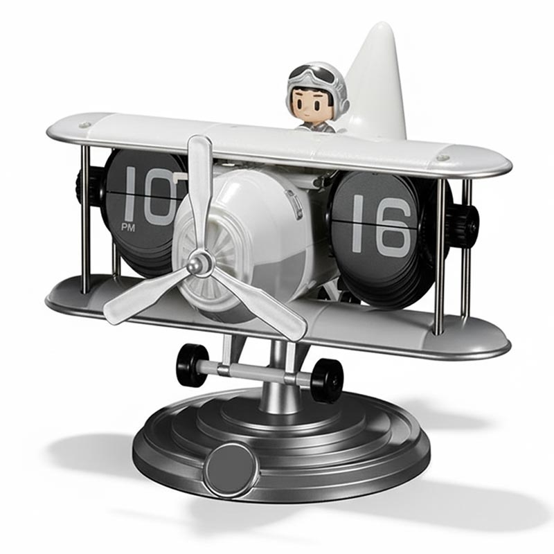 Dette flip-skrivebordsur har både funktionalitet, stil og nostalgisk charme. Det lydløse mekaniske system er ideelt til både arbejds- og afslapningsområder, mens den iøjnefaldende flysilhuet øjeblikkeligt forvandler ethvert område til et samtaleværdigt sted. Hvis du er på udkig efter et møbel, der pålideligt holder tiden uden forstyrrende støj, er Time Flyer Airplane Flip Desk Clock et must-have.