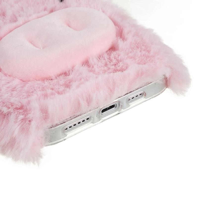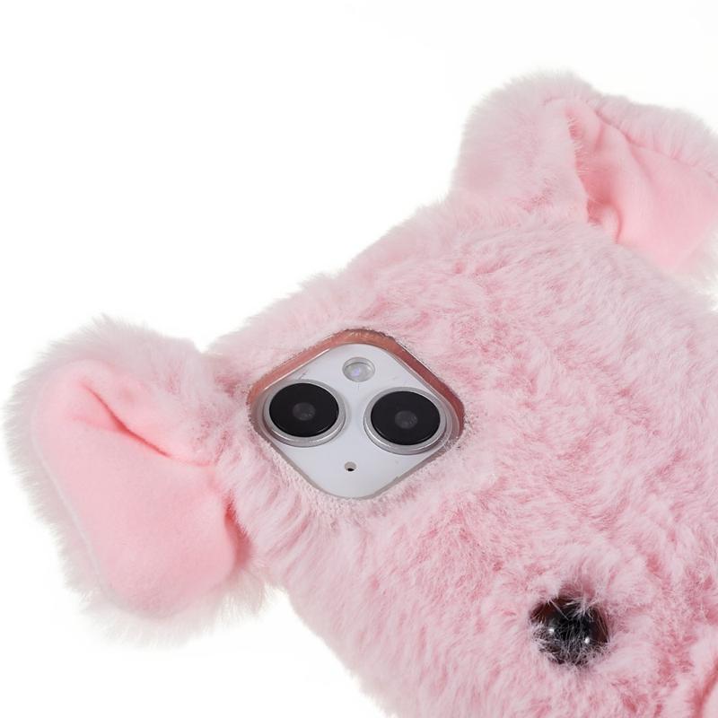 Til iPhone 14 Plus Cute Cartoon Pig Design Blødt plys + TPU beskyttende etui Telefon faldsikkert cover