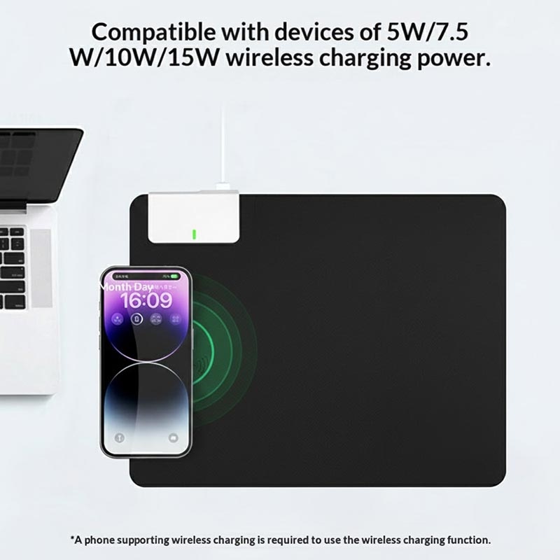 Den trådløse opladningsmusemåtte kombinerer hverdagens skrivebordskomfort med hurtig trådløs strømforsyning. Den er designet til moderne arbejdspladser og giver dig mulighed for at oplade din smartphone, mens du bruger musen, så du kan holde dit skrivebord organiseret og dine enheder med strøm hele dagen.