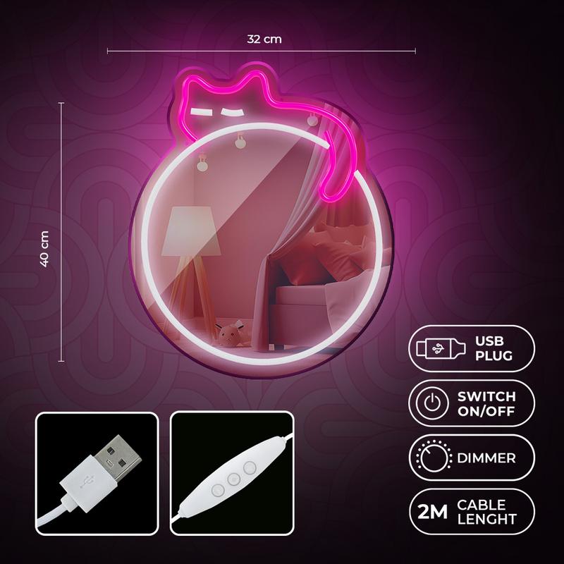 Forskøn din indretning med Neon MIRROR LED, en perfekt blanding af stemningsbelysning og et praktisk spejl omgivet af en stilfuld neonramme. LED-lyset skaber en hyggelig og afslappende atmosfære, hvilket gør det ideelt til både boligindretning og hverdagsbrug. Dets alsidige anvendelse gør det til et blikfang i servicesaloner såvel som i boligområder.