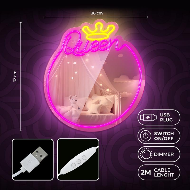 Forskøn din indretning med Neon MIRROR LED, en perfekt blanding af stemningsbelysning og et praktisk spejl omgivet af en stilfuld neonramme. LED-lyset skaber en hyggelig og afslappende atmosfære, hvilket gør det ideelt til både boligindretning og hverdagsbrug. Dets alsidige anvendelse gør det til et blikfang i servicesaloner såvel som i boligområder.