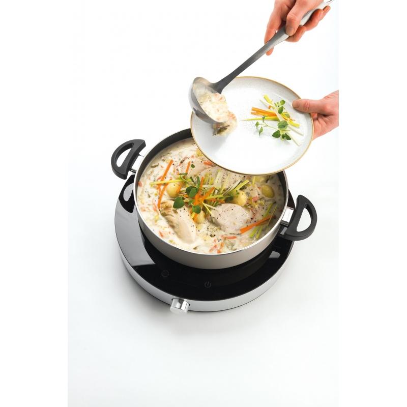Fritel overrasker med en fritstående XL induktion kogeplade i sort hærdet krystalglas. Alle har allerede oplevet dette problem: På trods af en stor induktionskogeplade er der ikke nok kogeplader. Apparatet er velegnet til madlavning, bagning og stegning med små eller store gryder og pander. Derudover kan kogepladen også holde dine retter varme i op til 3 timer.