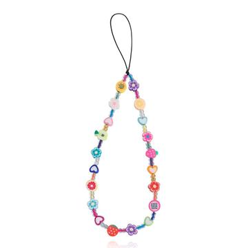 22cm telefonrem med farverige perler - armbånd i akryl med vedhæng til mobiltelefonen