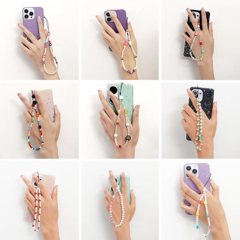 Giv din telefon et legesygt og stilfuldt pift med denne 22cm lange telefonrem med perleperler. Den er designet som både en dekorativ charm og en praktisk håndledsrem og kombinerer imiterede perleperler med farverige, flade harpiksperler for at skabe et friskt, regnbueinspireret look, der passer godt til forskellige telefoncovers og hverdagsstilarter.
