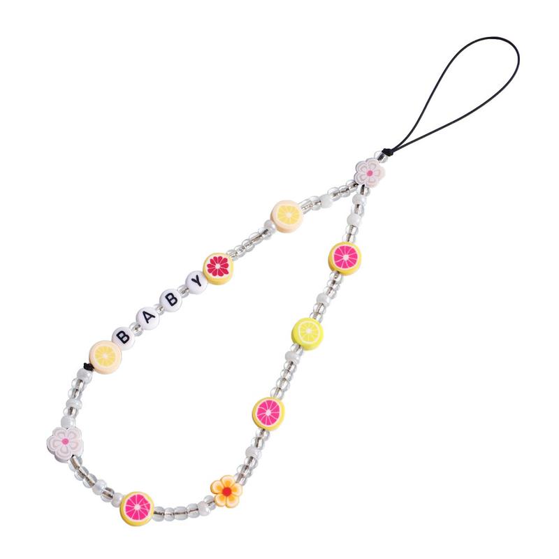 22cm telefonrem med farverige perler - armbånd i akryl med vedhæng til mobiltelefonen