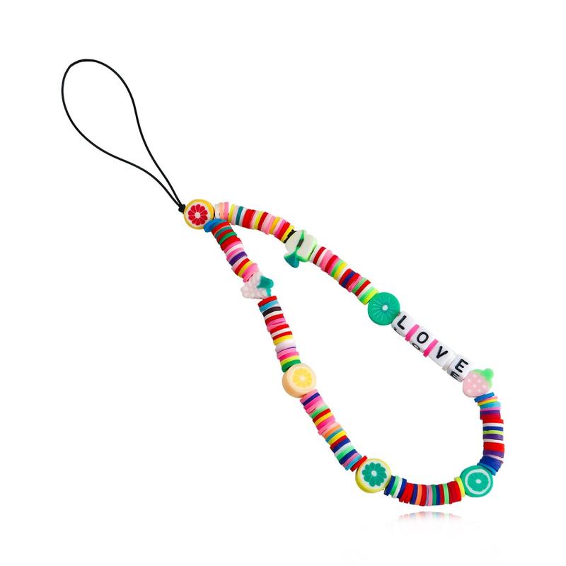 22cm telefonrem med farverige perler - armbånd i akryl med vedhæng til mobiltelefonen