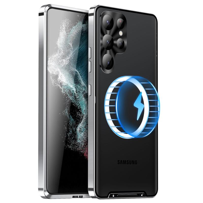 Galvaniseret Magnetisk Samsung Galaxy S23 Ultra 5G Hybrid Cover - Sølv