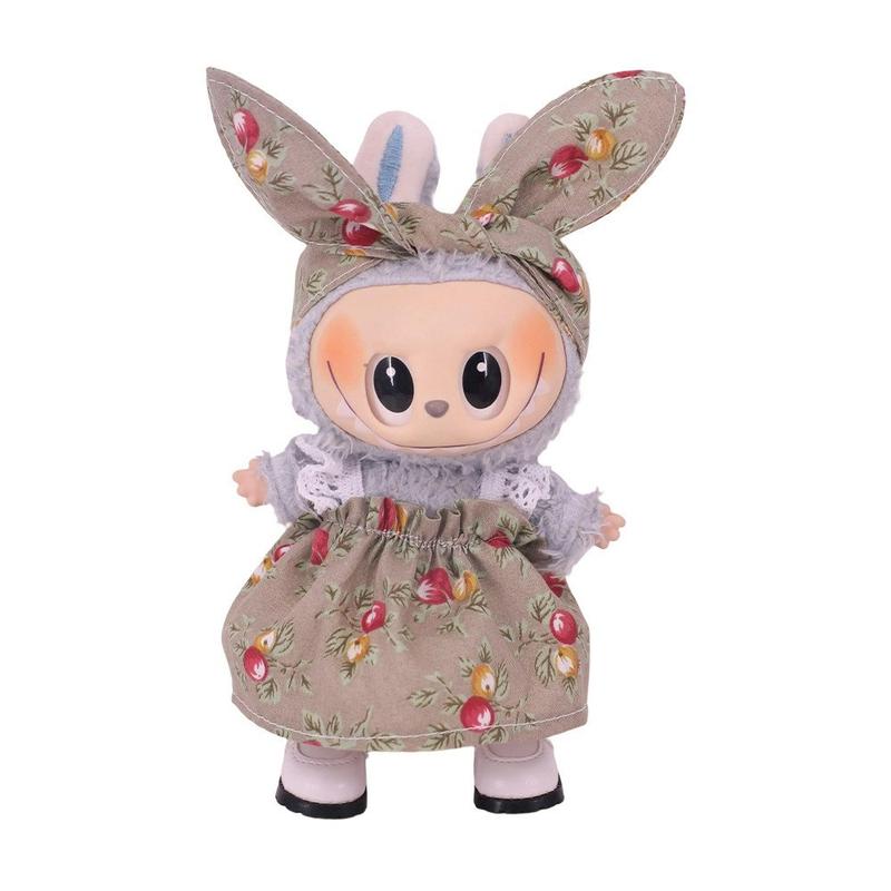 Hættetrøje i plys med dyretema til Labubu-dukke 17 cm - Kanin