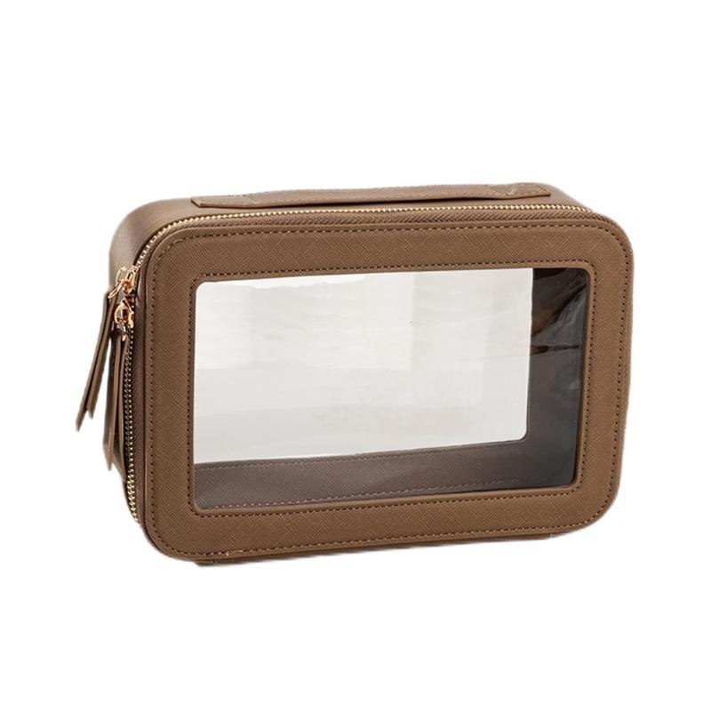 Gennemsigtig makeuptaske i ét lag Vandtæt kosmetikpung i PU-læder - Khaki