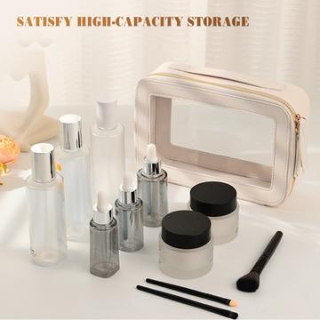 Gennemsigtig makeuptaske i ét lag Vandtæt kosmetikpung i PU-læder