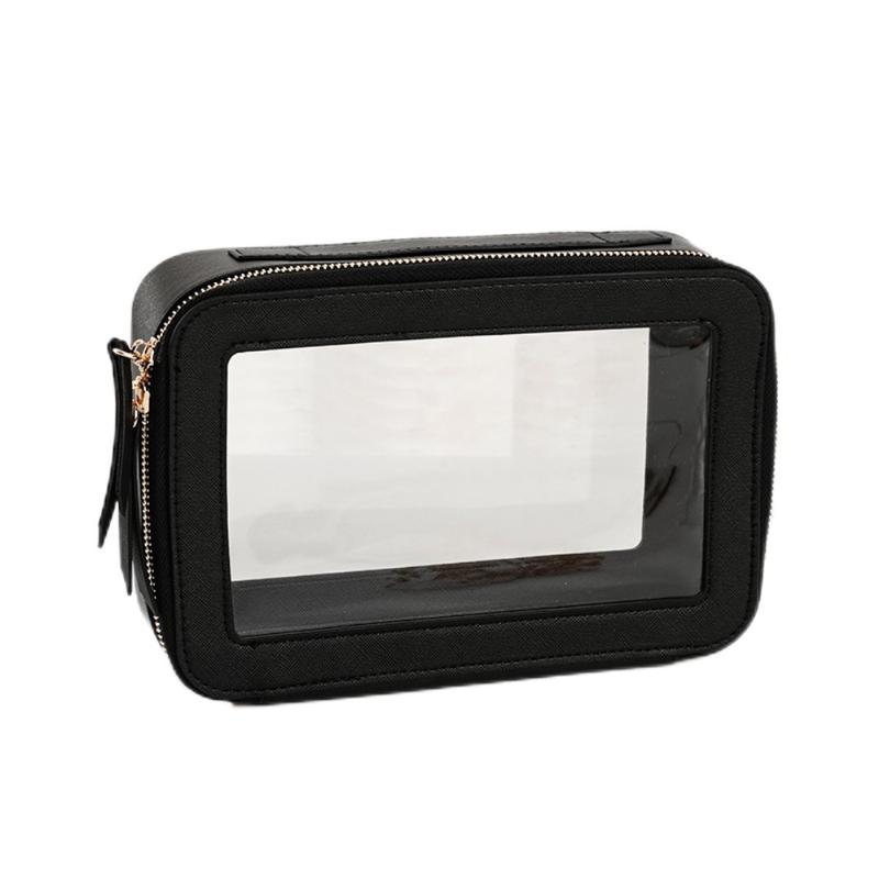 Gennemsigtig makeuptaske i ét lag Vandtæt kosmetikpung i PU-læder - Sort