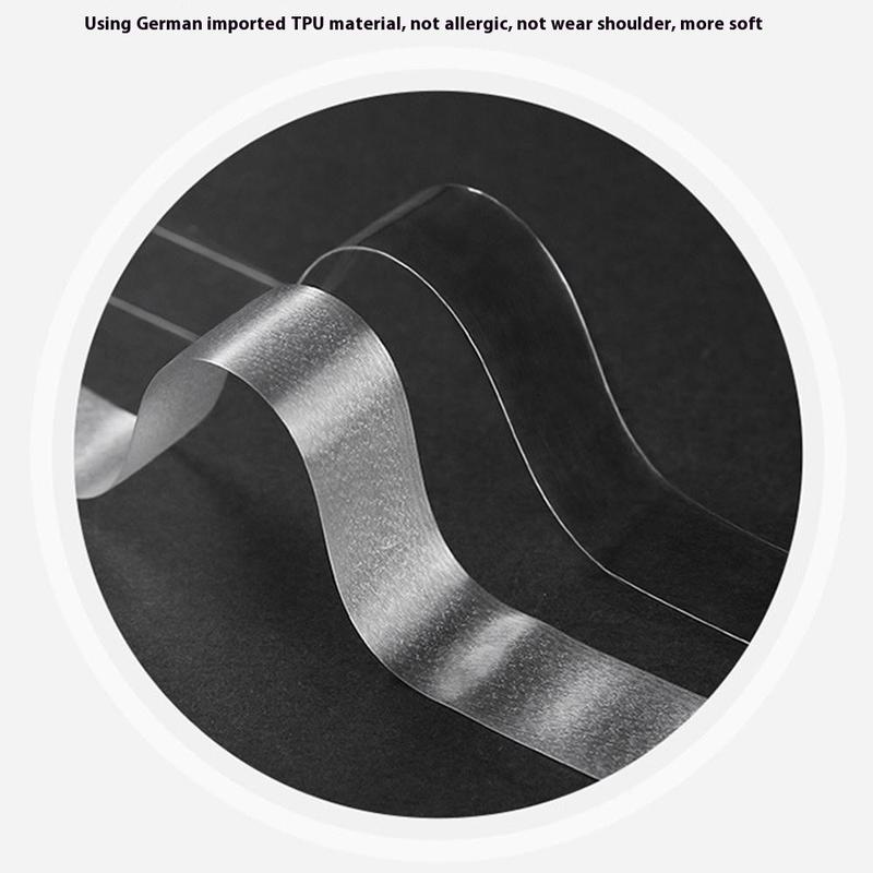 - Usynligt design: Det gennemsigtige TPU-materiale smelter sømløst sammen med din hud og sikrer diskretion under stropløs, off-shoulder eller tyndstroppet tøj.