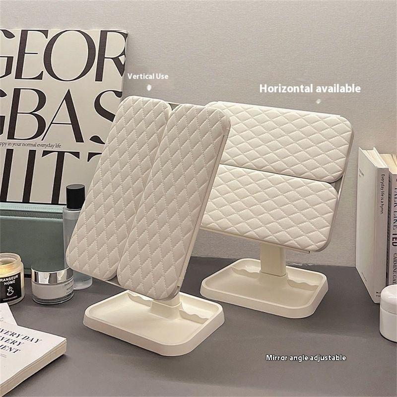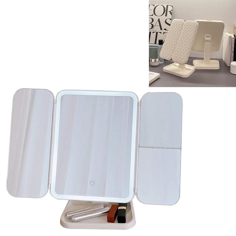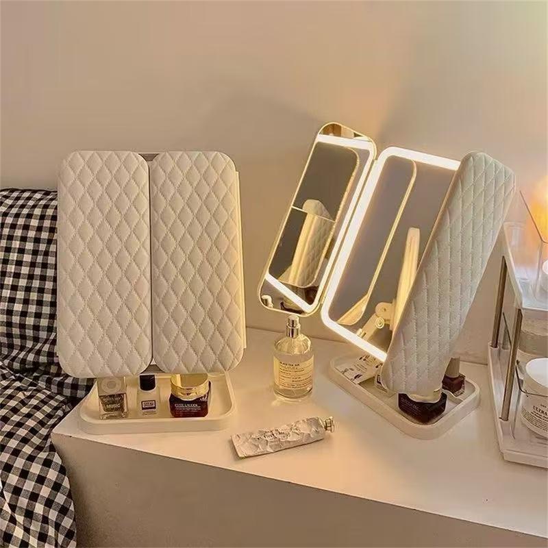 Tri-Fold LED makeupspejl kombinerer stil, funktionalitet og bekvemmelighed. Med justerbar belysning, præcisionsforstørrelse og ledningsfrit design er det et uundværligt tilbehør til at opnå en fejlfri makeup under alle lysforhold.