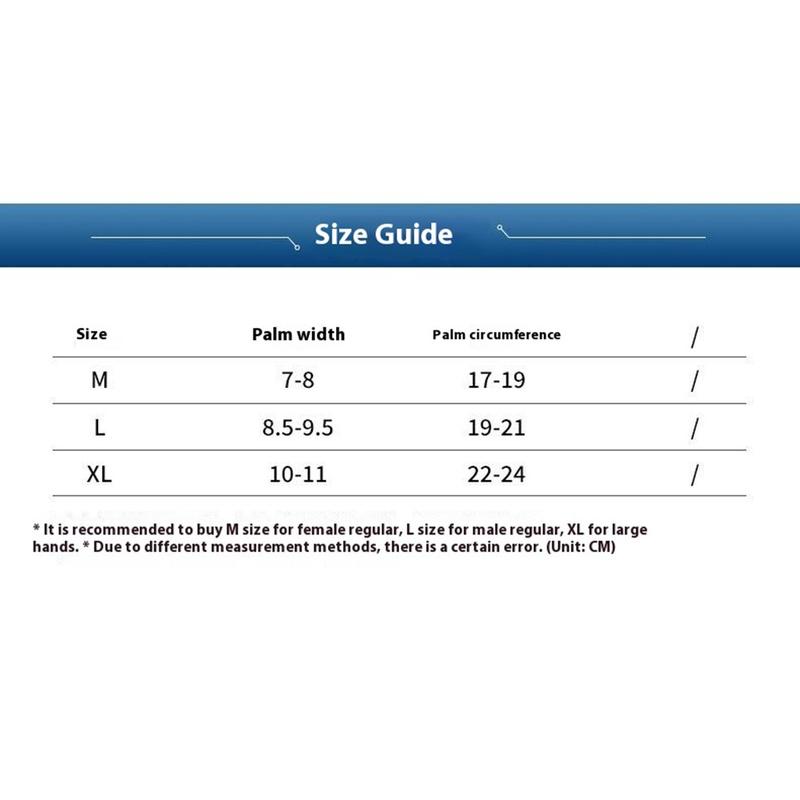 - XL: Håndfladebredde: 10-11 cm, håndfladeomkreds: 22-24 cm