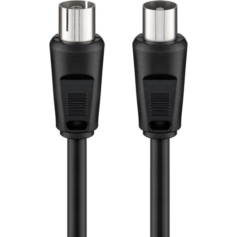 Dobbeltskærmet satellitkabel til forstyrrelsesfri transmission, Formstøbt stik på begge sider til beskyttelse mod støv, snavs og mekanisk belastning, Forniklede, præcisionstilpassede stik, Til tilslutning af apparater med koaksial tilslutning, f.eks. tv, modtagere og radioer.