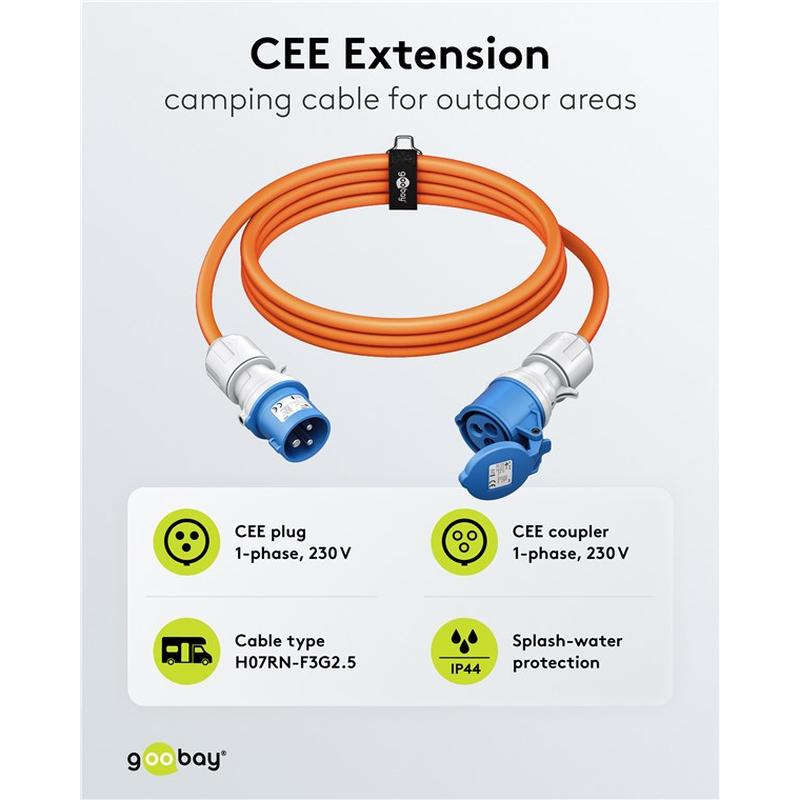 Goobay CEE-forlængerkabel til camping - CEE-stik til CEE-kobling - 5m, 16A, 3680W