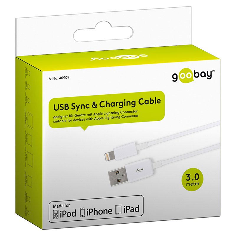 - Oplad og synkroniser hurtigt din iPhone, iPad og iPod med dette fænomenale Lightningkabel fra Goobay