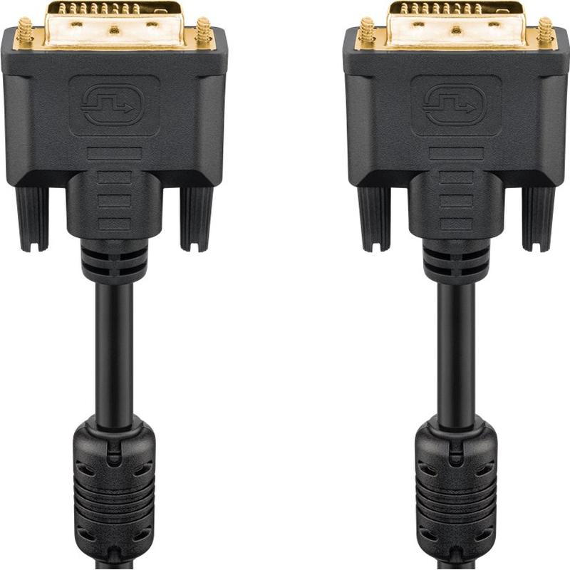 Goobay DVI-D-kabel med Dual Link (24 + 1 stift) til digital billedoverførsel fra pc til enheder som billedskærm eller projektor. Højupplöst billedskærmkabel understøtter Full HD 1080p (1920 x 1080 pixlar) og opløsninger op til WQXGA (2560 x 1600 pixlar), Guldplader, korrosionsbeständige DVI-D-kontakter garanterer fremragende ledningsevne under mange år. Ferritkärnor på begge kabelender reducerer effektive elektromagnetiske ydelser. DVI-kabel med en længde på 10 m er perfekt til at overbrygge stor avstand.