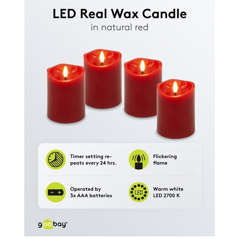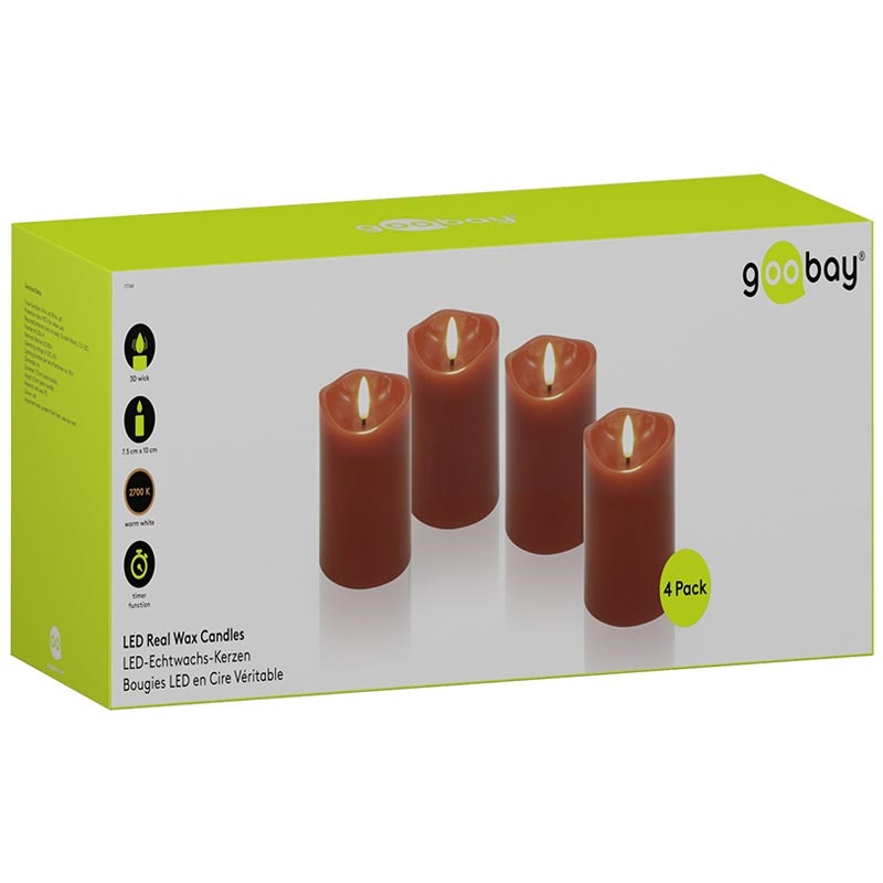 Goobay LED ægte vokslys - 3D-flamme, timerfunktion, varm hvid 2700 K, batteridrevet