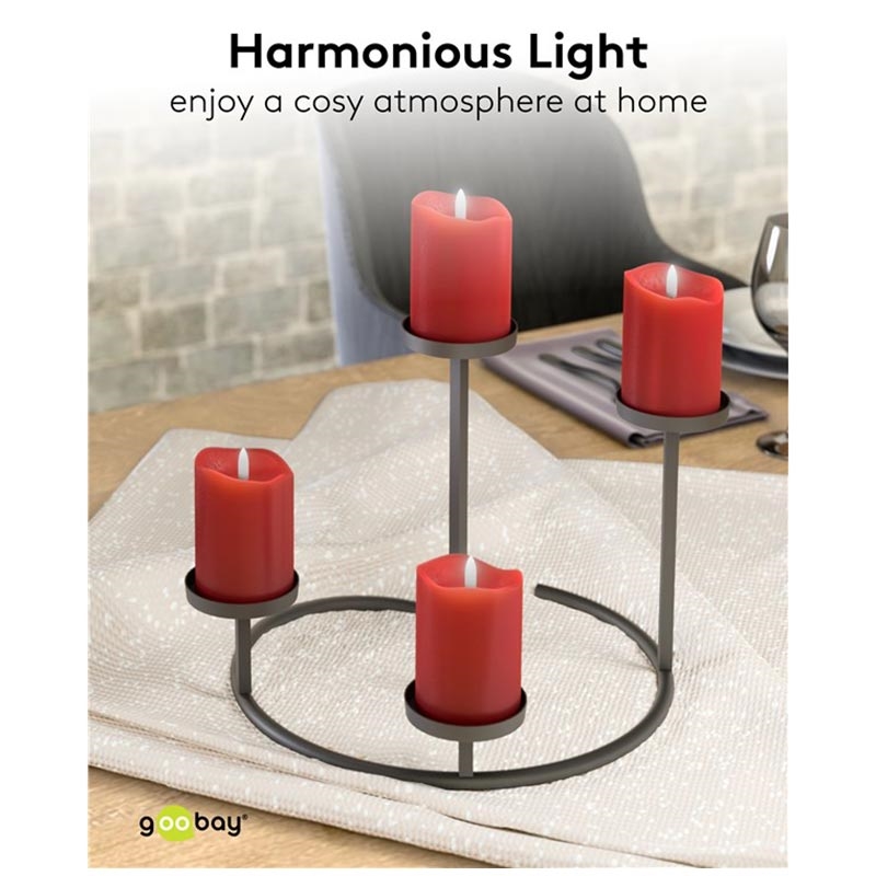 Tilføj klassisk stearinlyscharme til ethvert rum med dette sæt med 4 Goobay LED Real Wax Candles. De er fremstillet af ægte voks og udstyret med 3D-flammekegler og skaber en smukt realistisk flakkende effekt, der indfanger varmen fra traditionelle stearinlys - uden sod, varme eller brandfare. Den varme hvide 2700 K-glød giver en hyggelig atmosfære, der passer til indretning året rundt, fra intime middage til festlige julefrokoster. Med en automatisk 6-timers timer og batteridrift giver disse lys en ubesværet stemning overalt, hvor rigtige flammer kan være usikre eller ikke er tilladt.