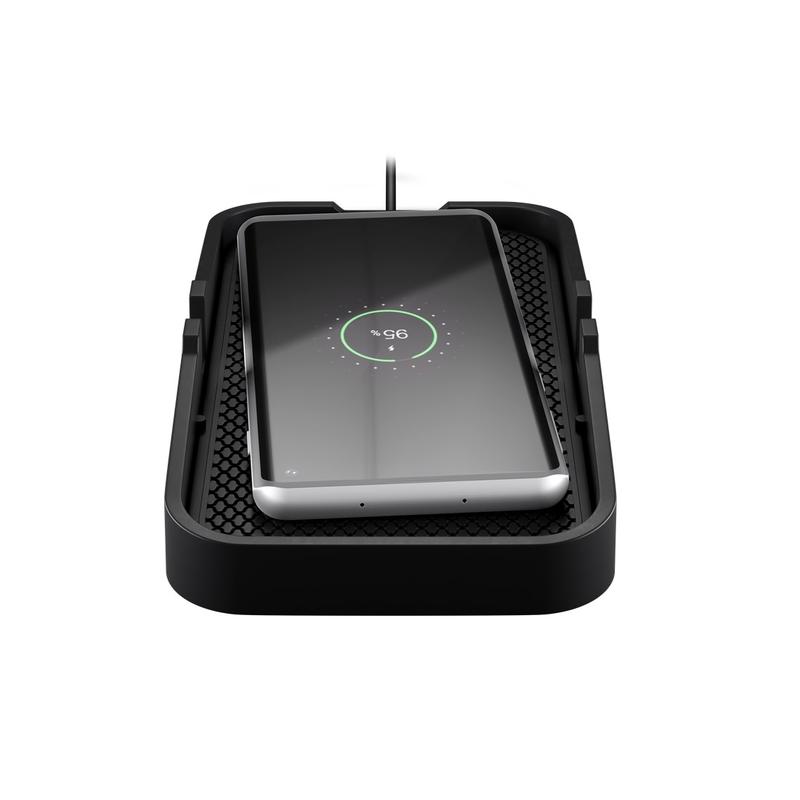 Opladningspladen er en praktisk og effektiv løsning til midterkonsollen eller instrumentbrættet i din bil. Med smartphonen altid inden for rækkevidde kan du blot placere den på opladningsmåtten for at starte den trådløse opladningsproces uden brug af kabler. Wireless Fast Charge-teknologien hjælper med at eliminere kabelrod og giver mulighed for en enkel og problemfri opladningsoplevelse. Qi-teknologien sikrer kompatibilitet med forskellige smartphone-producenter som Apple, Samsung, Sony, Huawei, LG og Xiaomi. Derudover giver den integrerede sikkerhedselektronik beskyttelse mod overbelastning, overspænding, høje temperaturer og snavs. Hurtigopladeren har også en hurtig opladningstid og oplader din enhed fuldt ud dobbelt så hurtigt som standardopladere.