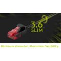 Helgjuten, oskärmad LAN-kabel med 2x RJ45-kontakter för anslutning av nätverkskomponenter , Extremt tunn Ethernet-kabel med liten kabeldiameter på 3,6 mm, Internetkabel med liten böjningsradie och hög flexibilitet för utrymmessnål installation, t.ex. i serverhyllor, dator- eller datacenter. Kort RJ45-kontakt (11,6 x 26,7 mm) med snäpplåsskydd, Högkvalitativ kopparledare (CU) och guldpläterade kontaktytor garanterar en utmärkt, högpresterande nätverksanslutning. , Böjskydd och stabilt mantel (4,5 mm) skyddar Ethernet-kabeln optimalt mot kabelbrott. Nätverkskabel är lämplig för Power over Ethernet (PoE).