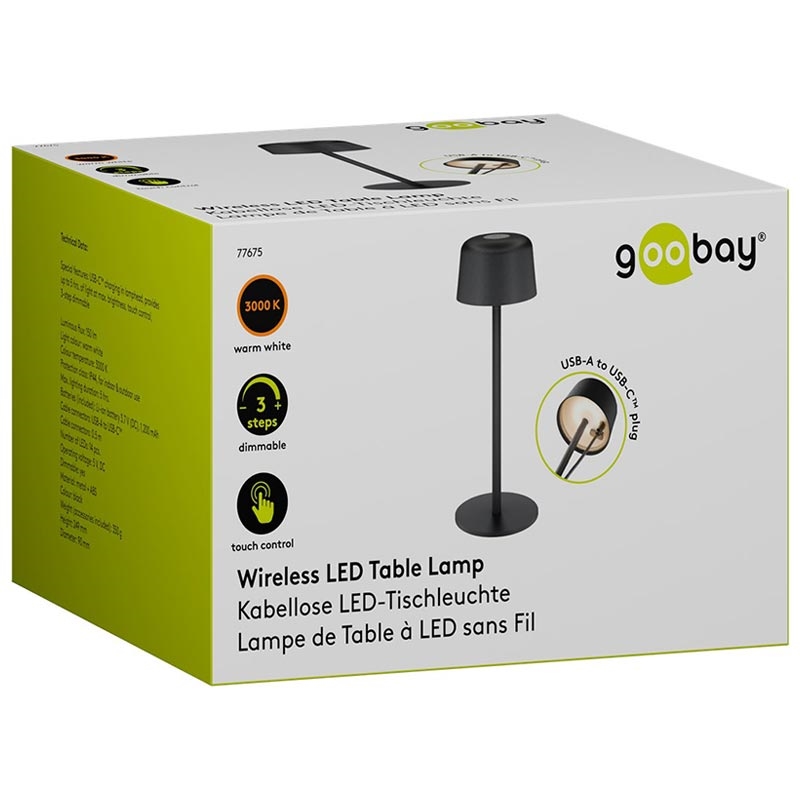 Goobay trådløs LED-bordlampe - størrelse S (25 cm), berøringsbetjening, varm hvid 3000 K, 150 lm, USB-C-genopladelig, IP44